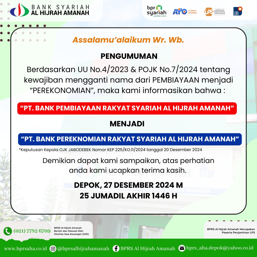 Deposito iB Al Hijrah AmanahDeposito iB Al Hijrah Amanah, dana anda dikelola secara profesional dan transparan sesuai dengan prinsip syariah.